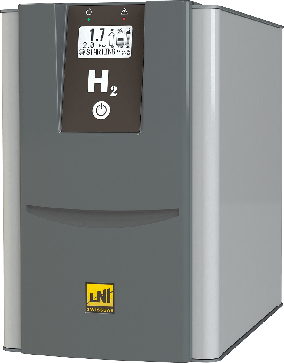 Инновационная система осушки газа (двухколонная система сушки PSA с автоматической регенерацией) обеспечивает максимальную степень чистоты водорода, не требует технического обслуживания и обеспечивает непрерывную работу 24 часа в сутки.