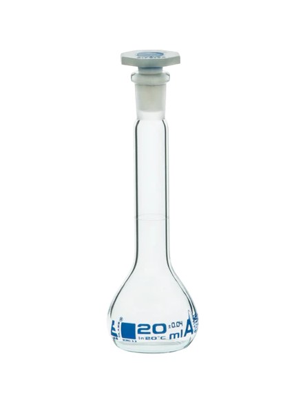 Flask Volumetric class 'A', cap. 20 ml, socket size 10/19, borosilicate glass, Blue Printing