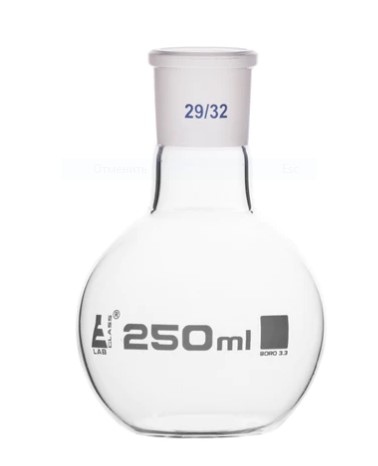 Flask Boiling with joint, flat bottom, short neck, interchangeable joint 250 ml, socket size 29/32, borosilicate glass