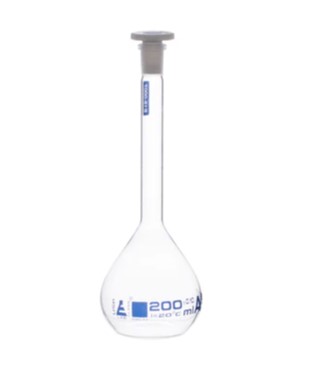 —Колба Объемный класс «А», колпачок. 200 мл, размер розетки 14/23, боросиликатное стекло, синяя печать