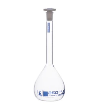 —Колба Объемный класс «А», колпачок. 250 мл, размер розетки 14/23, боросиликатное стекло, синяя печать