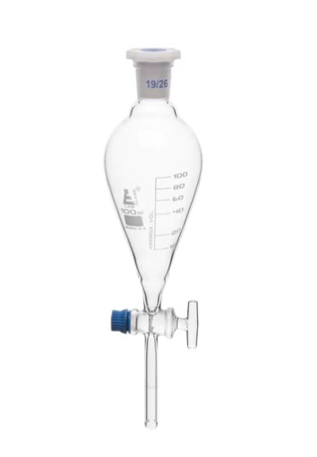 Squibb Separating Funnel - Glass Key Stopcock, Plastic Stopper 100 ml